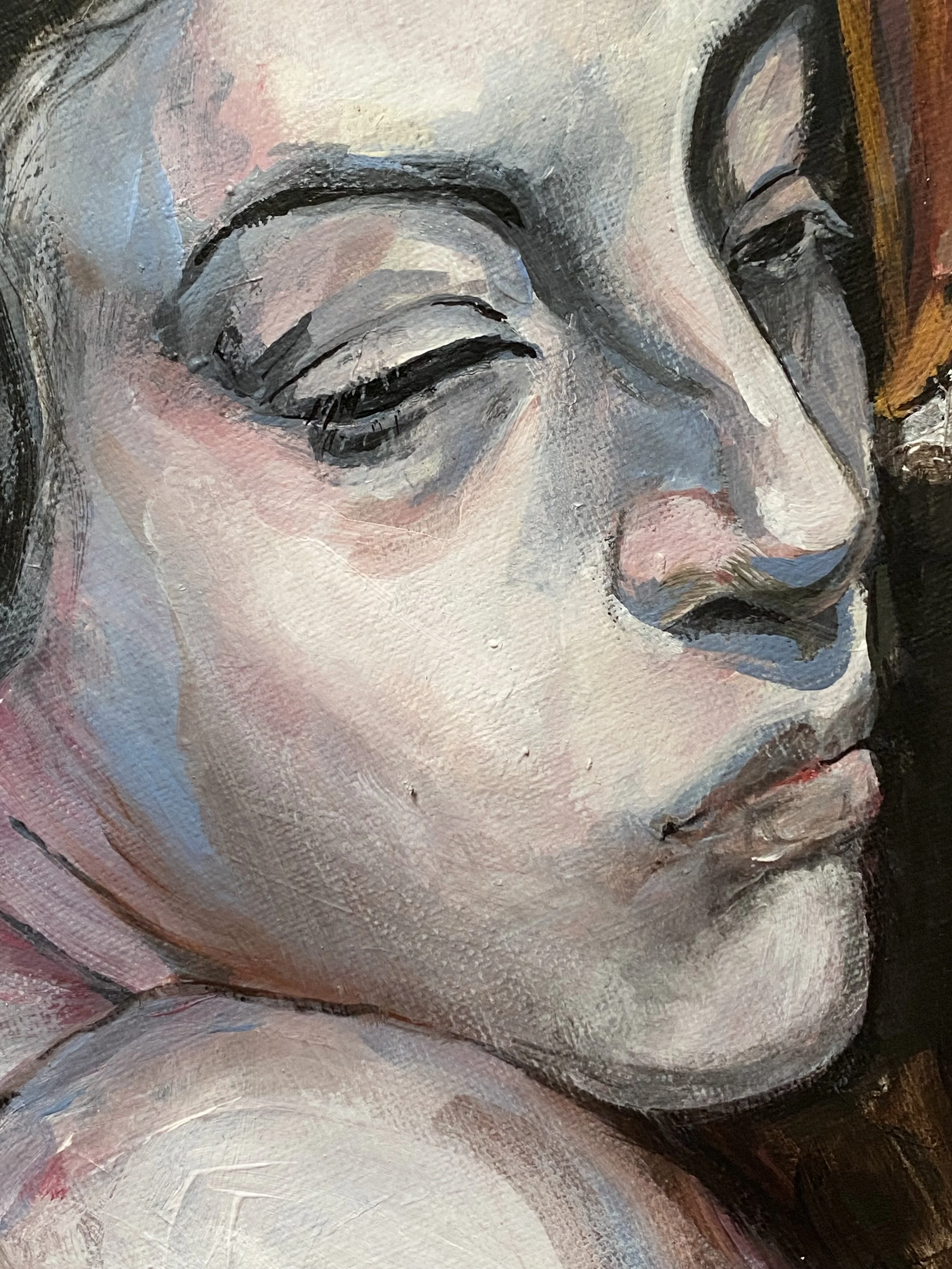 The gold in the background and the red drapery were my way of adding warmth to the silence. I wanted the piece to feel peaceful but also a little mysterious — like a dream you half-remember after waking.