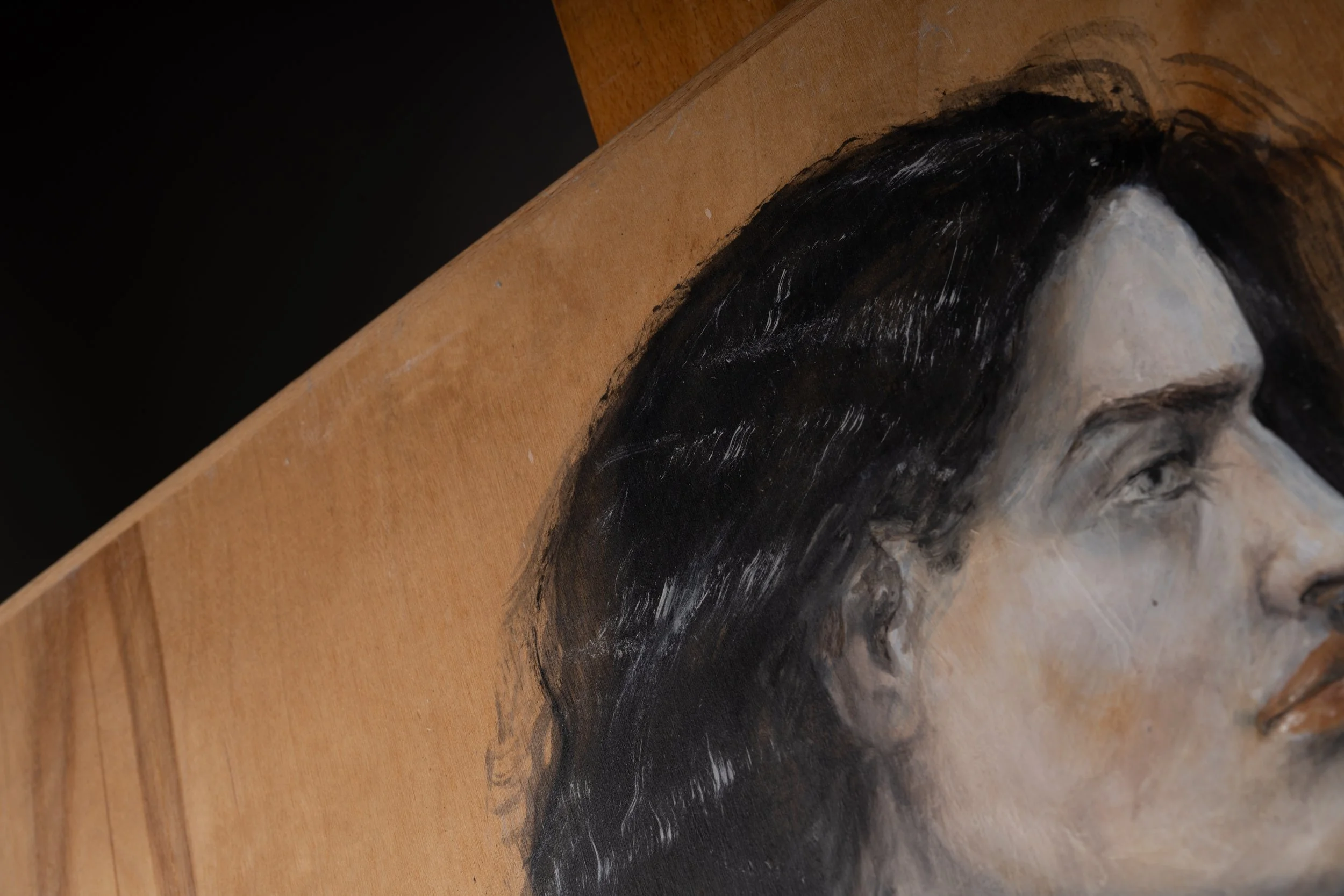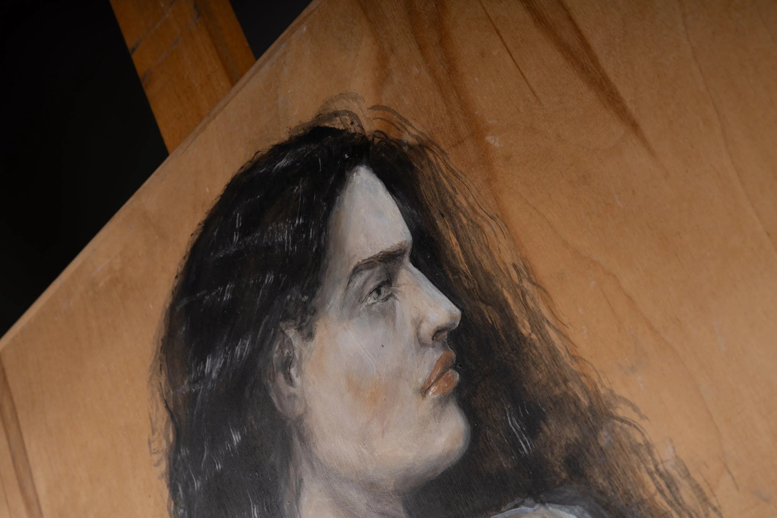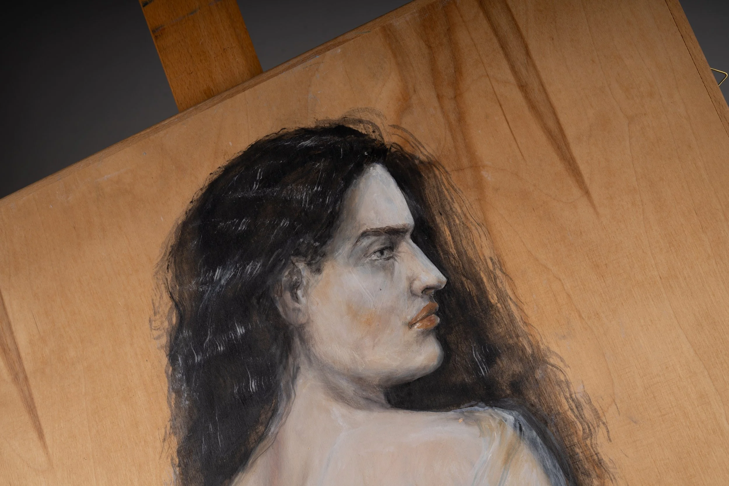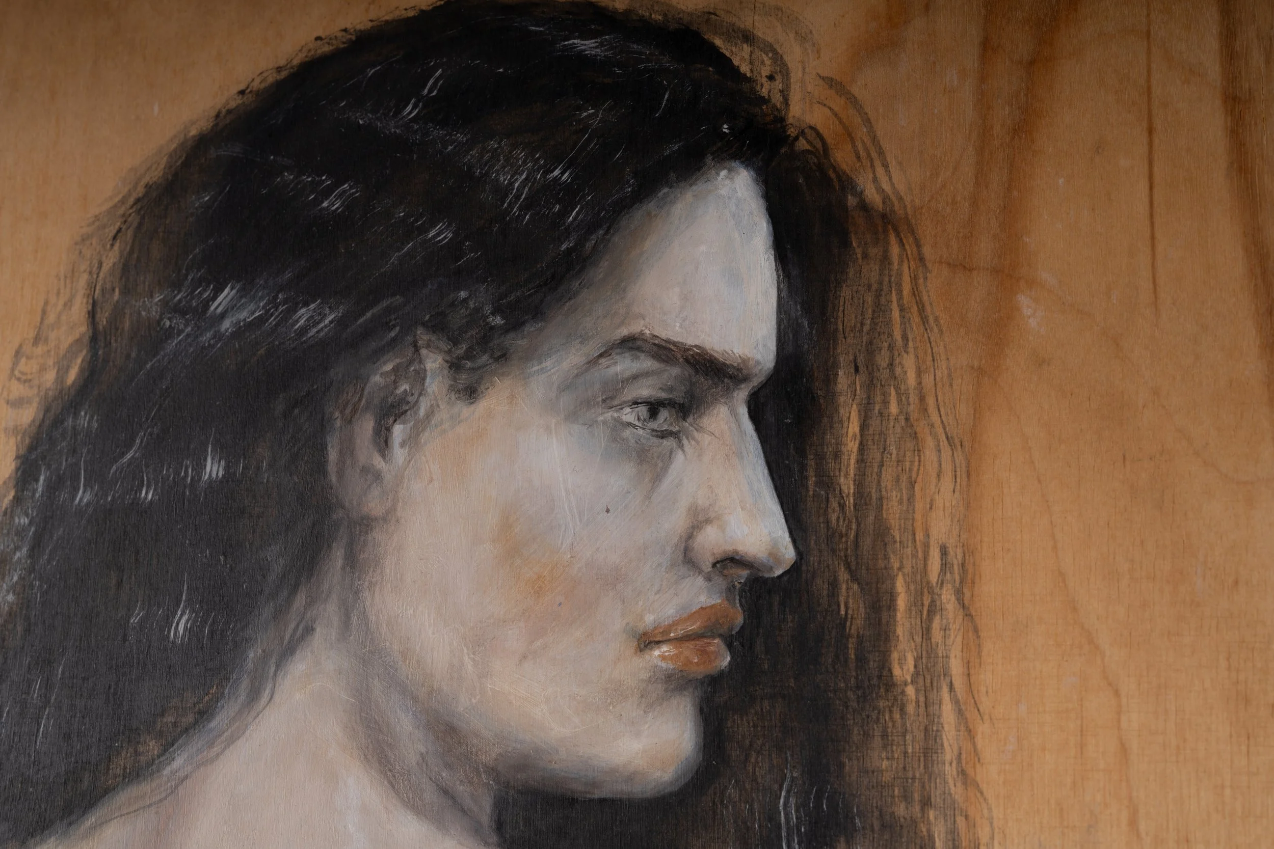 This painting was inspired by the myth of Persephone — a story I’ve always found both beautiful and unsettling. I didn’t want to paint her as a goddess, but as a woman caught between two worlds, holding something that is both life and burden.