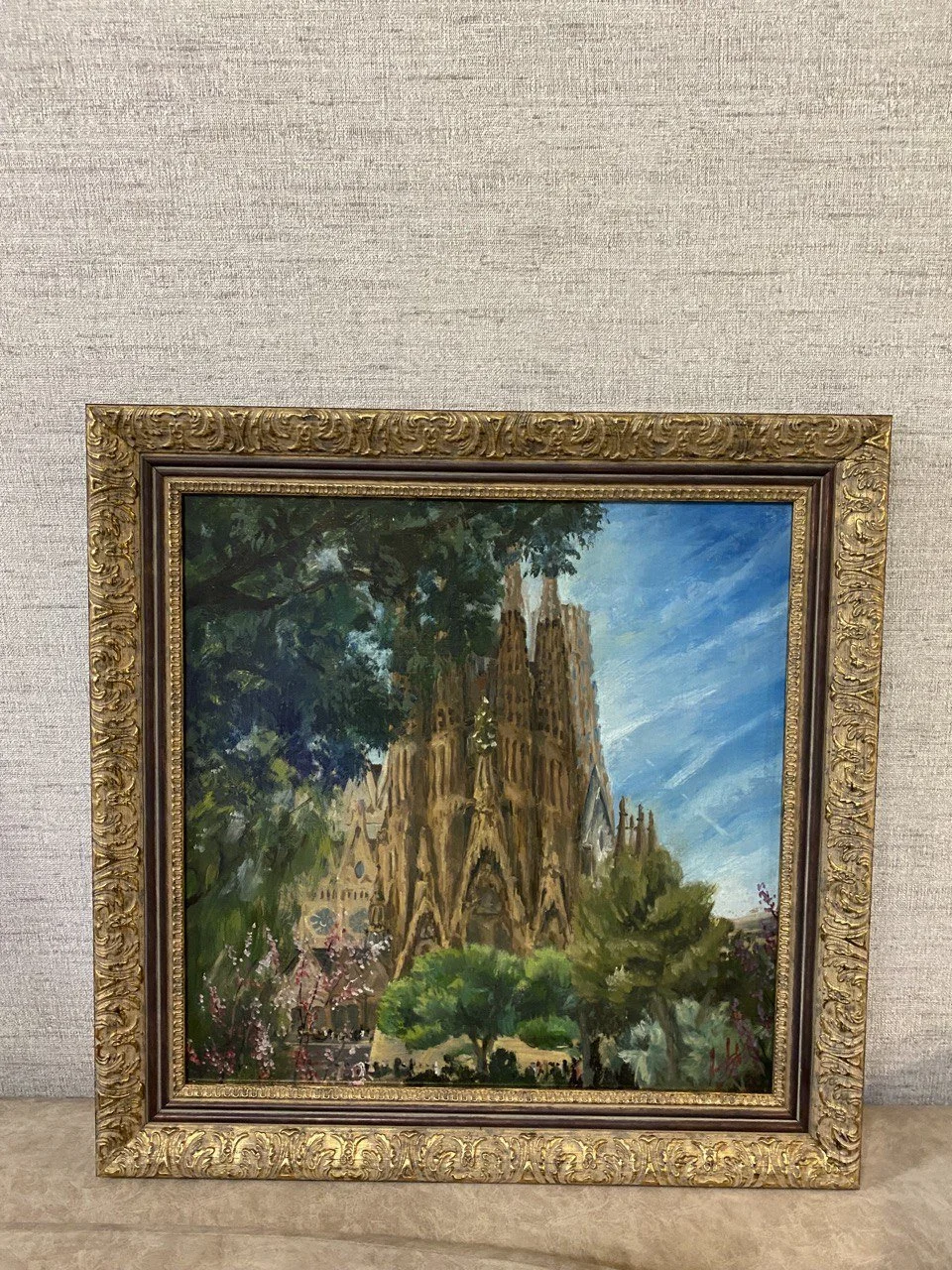 I painted the Sagrada Familia after visiting Barcelona and being completely captivated by the light, the shapes, and the energy of the city. The basilica itself is overwhelming in detail, but I wanted to capture it through the way it felt to me — framed by greenery, under a bright, moving sky.
