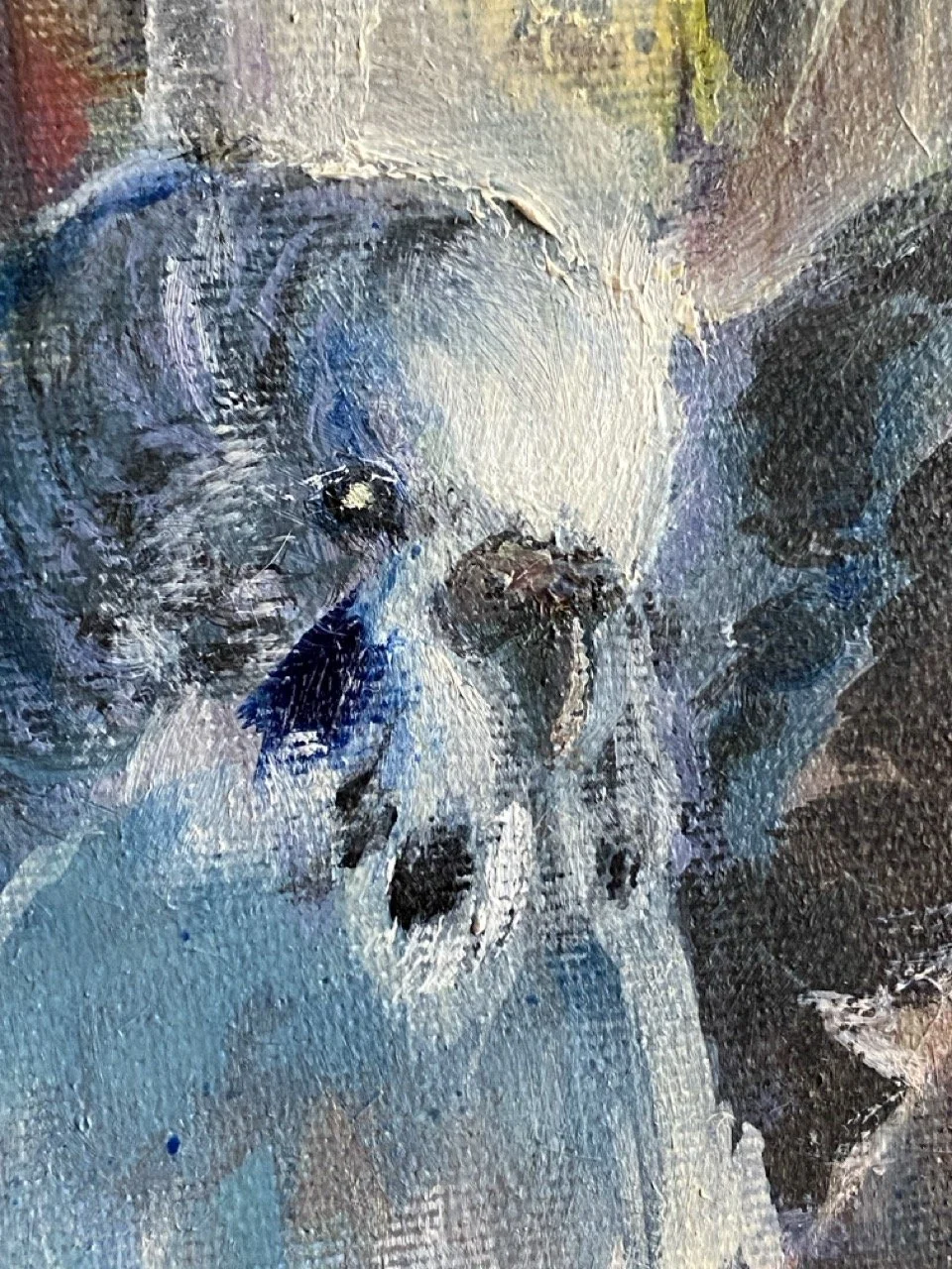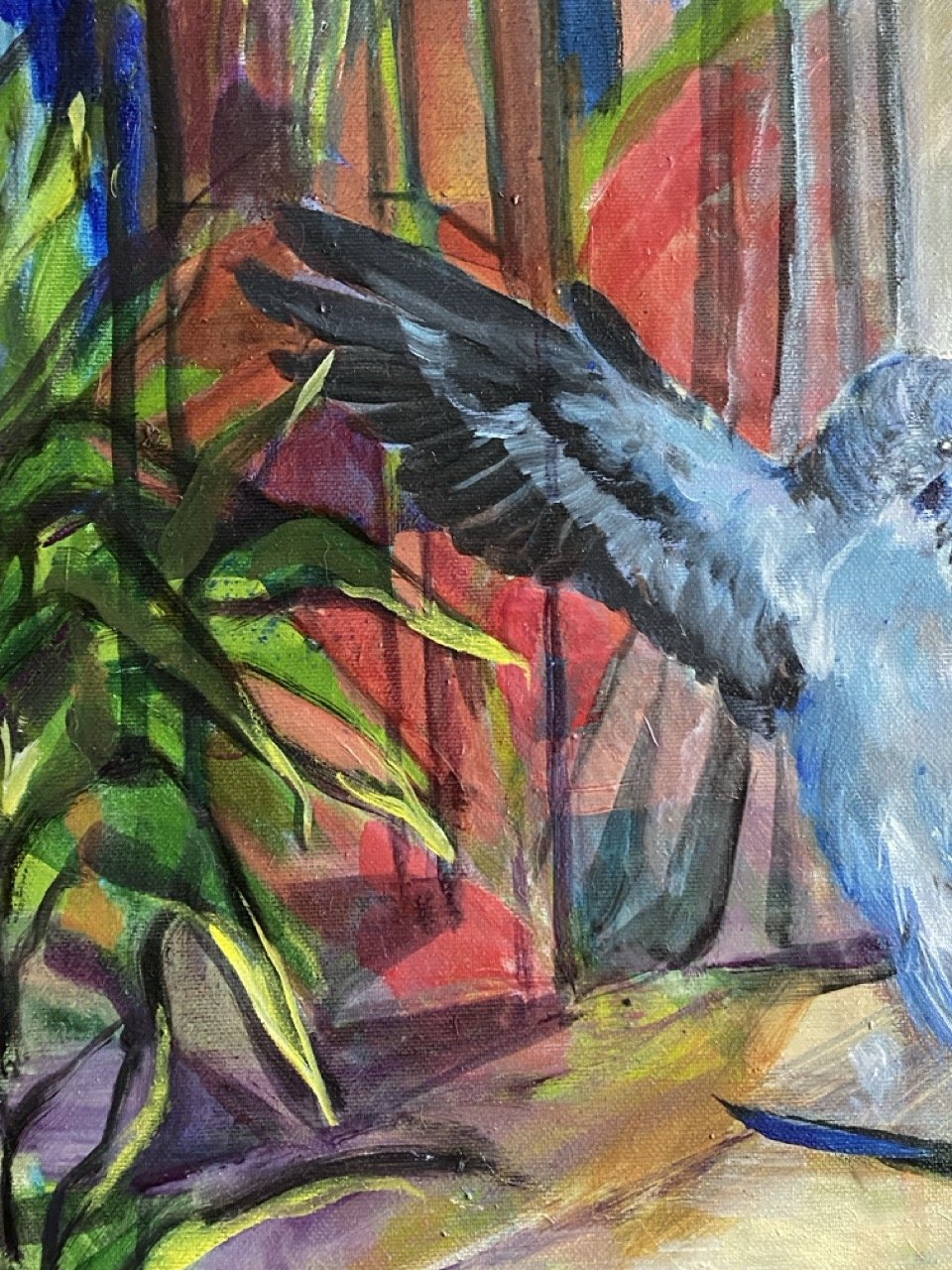 The open cage in the background and the warm light are about freedom. I wanted to capture the feeling of connection — between me, them, and the small world we shared. Even though they’re gone, this painting holds a part of that time that still feels alive.