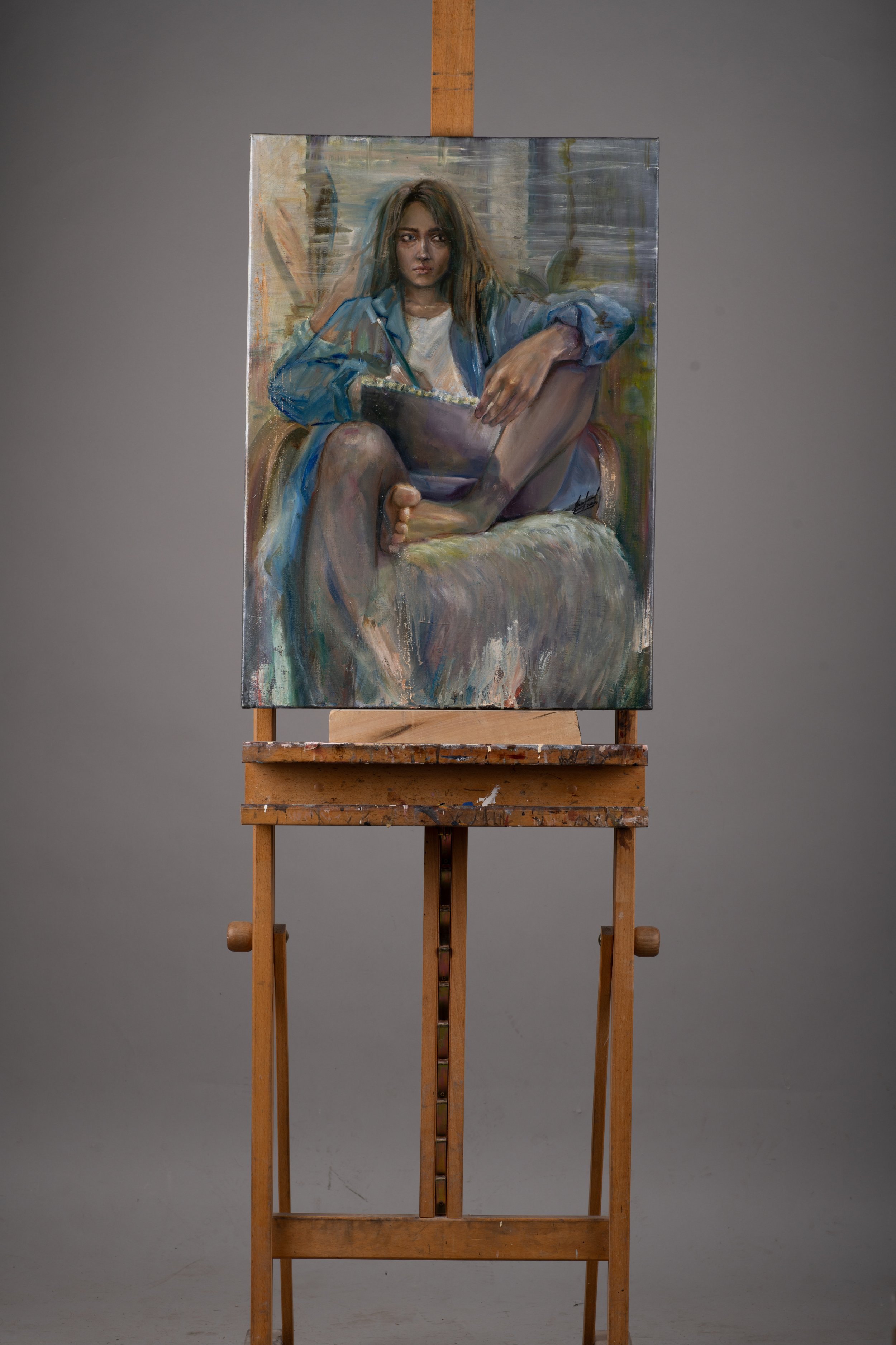 I sit in my chair, lost in thought, surrounded by familiar things — soft light, a bit of warmth, silence. It’s not about sadness, really, but about being alone with your own thoughts. The colors are muted, the brushstrokes soft, to keep that feeling of quiet.